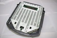 CD-Laufwerk aufgesetzt werden kann. Es bietet einen RF-Ausgang, einen DSP-Port, einen Erweiterungsport, zwei Controlleranschlüsse und auf der Oberseite den Modulschacht. PAL- und NTSC-Modelle lassen sich anhand der LED unterscheiden, bei PAL-Modellen leuchtet diese grün, bei NTSC-Modellen rot.