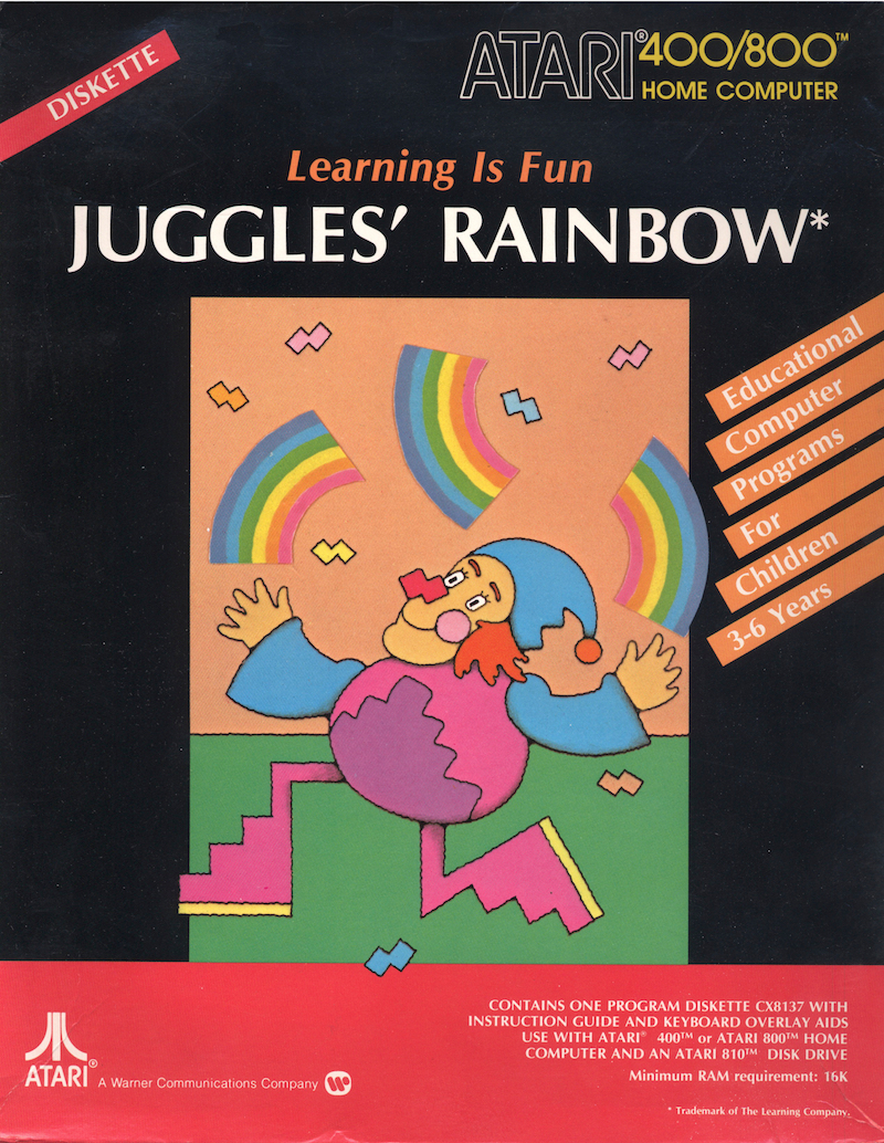 Juggles' Rainbow is a unique learning program for your preschool child. Three separate games – Juggles' Rainbow, Juggles' Butterfly, and Juggles' Windmill – help your child learn the concepts of ABOVE, BELOW, LEFT, and RIGHT. Together, they're an ideal way to help prepare your child for school.
