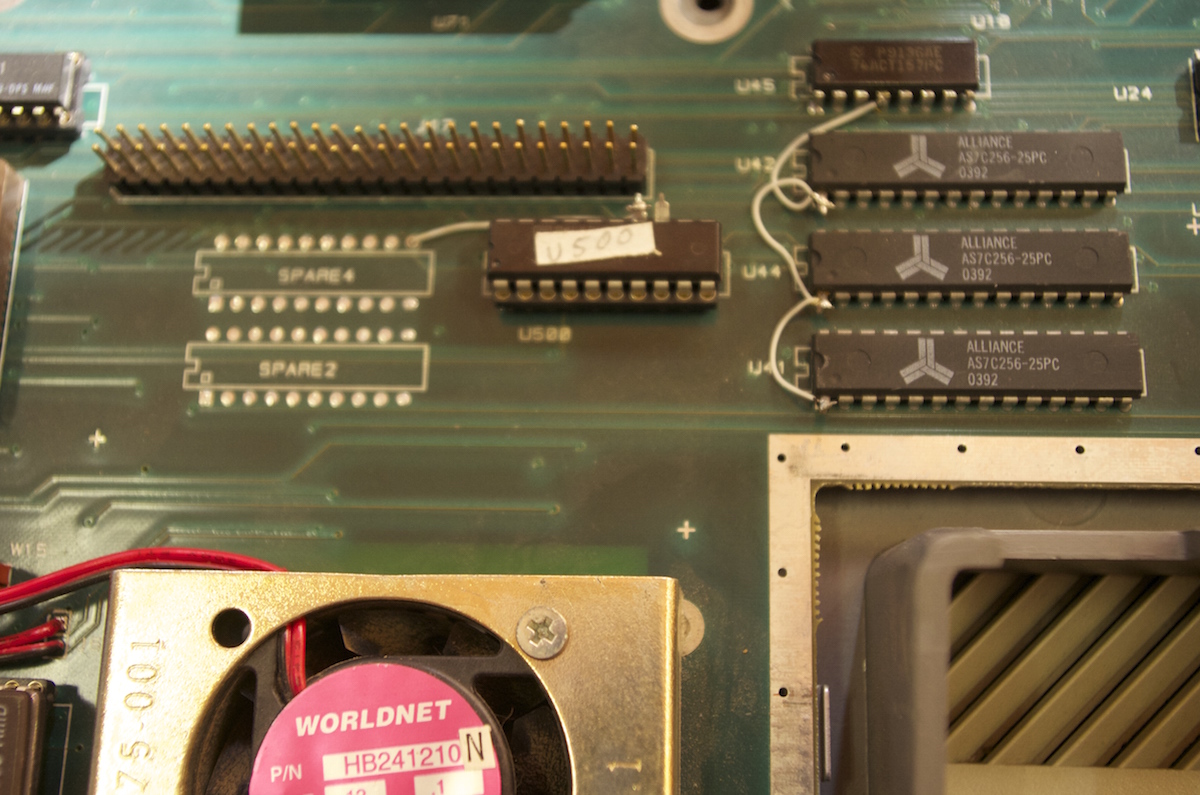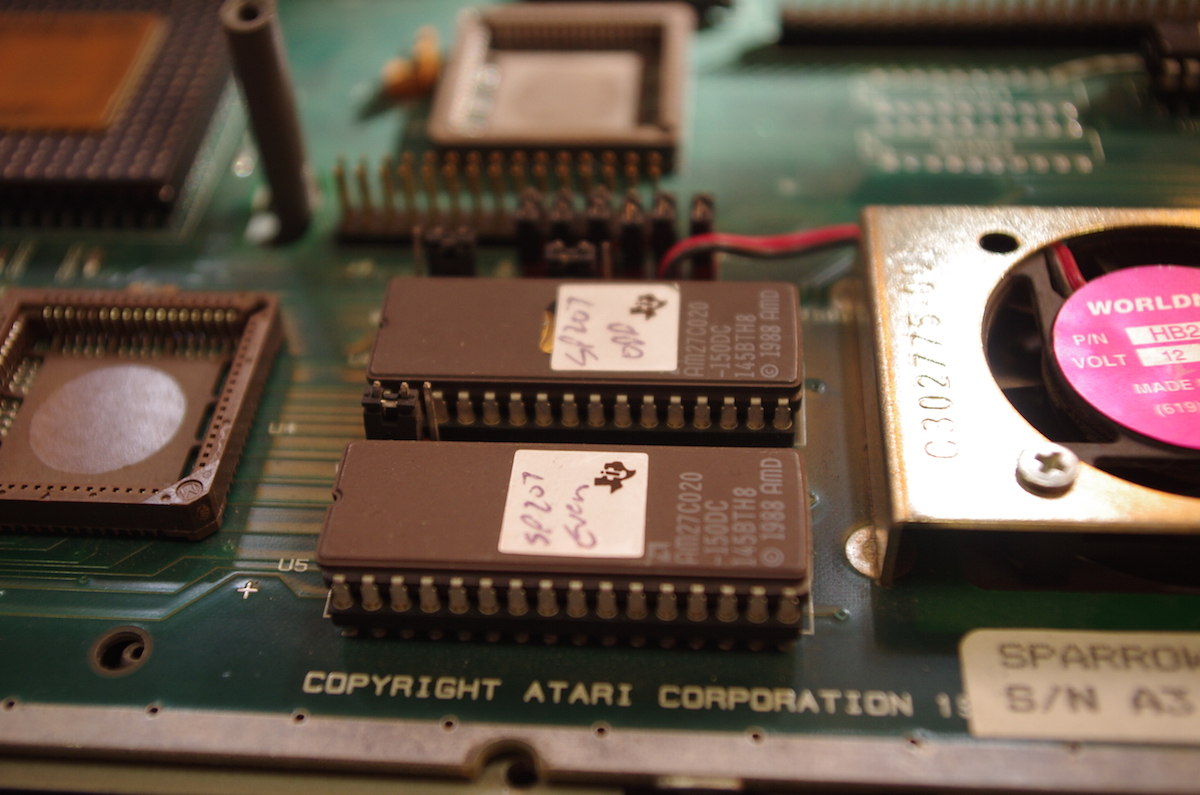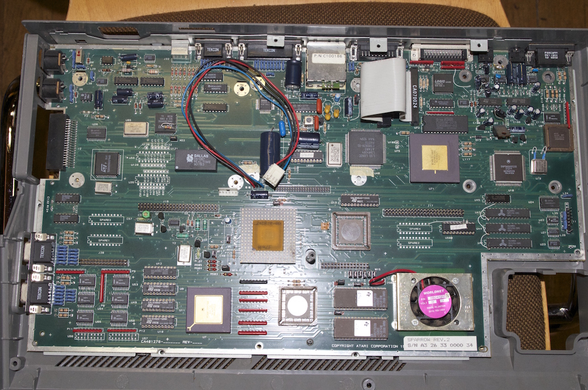 | Auf der Classic Computing 2014 in Schönau im Taunus hatte ich die Gelegenheit, den Sparrow- bzw. FX-1 Prototyp mit der Seriennummer 34 genauer zu betrachten, an dem in Sunnyvale von den Hardwareentwicklern John Townsend und Ken Badertscher gearbeitet wurde. Gefertigt wurde das Prototypen-Mainboard vom Subunternehmer EFA Corporation in Taiwan im Juni 1992. Dieser Prototyp ist dem Falcon 030 schon sehr nahe. |