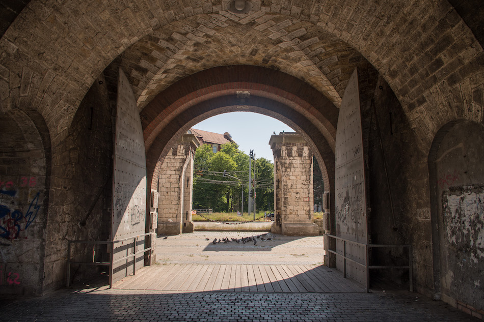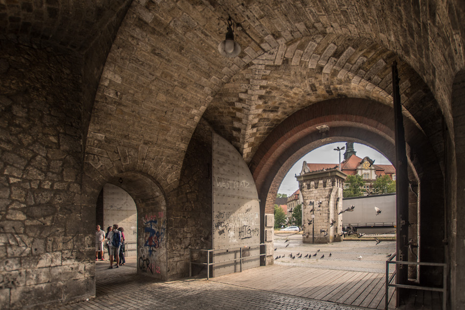 Diese Verbindungslinie besteht neben Wall, Escarpe, nassem Graben und Glacis aus dem inneren Tor der dreiteiligen Anlage des Ehinger Tors,