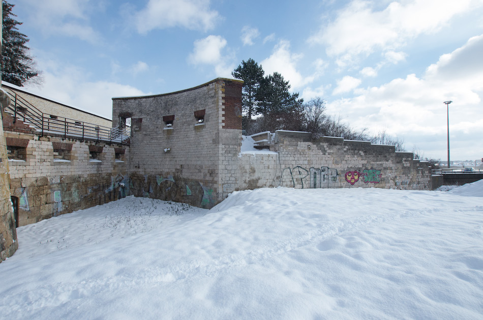 Die Contregarde bestand aus einem kompliziert aufgebauten Wall (im Volksmund deshalb auch „Die sieben Hügele“ genannt), einem trockenen Graben, der Escarpe und dem Ruhetaltor für Fußgänger.