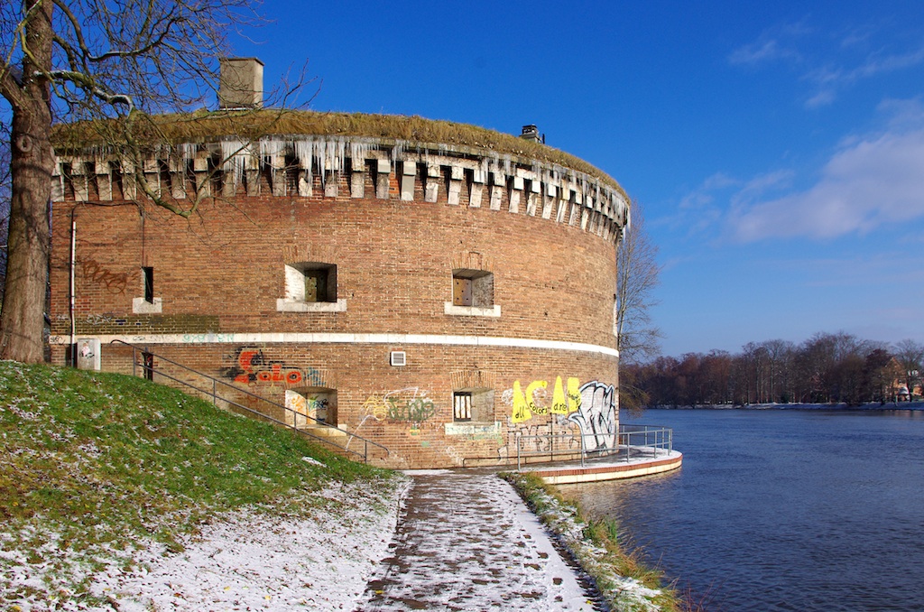 Halbbastion 1 eine Eisenkette mit einem Glieddurchmesser von einem Meter gespannt worden, um Schiffe und Boote davon abzuhalten, über den Wasserweg in die Festung einzudringen.