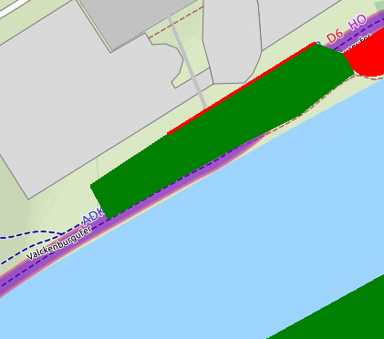 Das kurze Mauerwerk verläuft am Valckenburgufer vom Unteren Donauturm bis auf Höhe der Halbbastion 1 auf Neu-Ulmer Seite. Es liegt heute am Hotel Maritim.