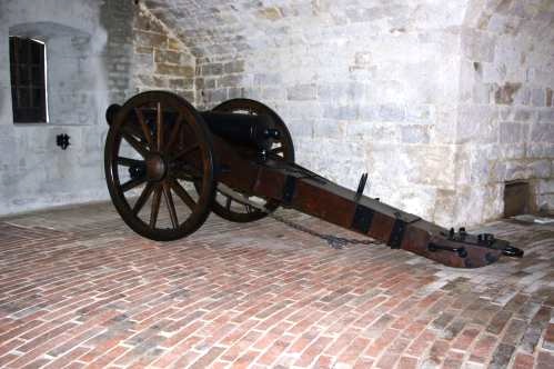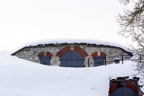 wurden im linken Wallende ein Pulvermagazin und auf dem Wall zwei