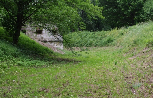 Im Werkshof, Blick auf das Reduit (links), linke Hohltraverse und linke Poterne, rechts vorne die Capitaltraverse |
