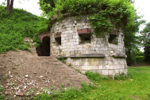 waren. In der Kehle befand sich vor dem Reduit eine kleine Caponniere. Bei der Modernisierung der Werke erhielt der Wall 1880 zwei Hohltraversen an den Schultern und eine Capitaltraverse im Saillant, die Grabenbrücke wurde durch