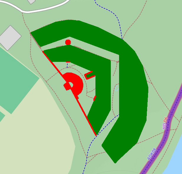 Offenhausen wegfiel, mussten die Pläne geändert werden. So besteht das Werk aus einem Reduit in der Mitte der Kehle, einer Kehlmauer und einer