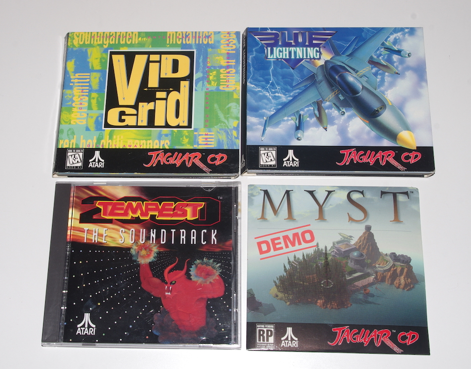 Eins der heute meistgesuchten Hardwareteile des Jaguar ist der bereits 1993 angekündigte, aber erst im September 1995 für $149 erschienene Multimedia-Aufsatz Jaguar CD. Dieser wurde von Philips produziert und liest Jaguar CDs, Audio CDs und Kodak Photo CDs, außerdem beinhaltet es die von Jeff Minter programmierte Virtual Light Machine, eine Art digitaler Effektsynthesizer nach dem Vorbild des 1977 erschienenen Effektsynthesizers Atari Video Music. Eingesteckt wird das Doublespeed-Laufwerk in den Modulschacht der Konsole, es besitzt dabei selbst einen durchgeschleiften Modulschacht, so dass das Laufwerk beim Verwenden von Modulspielen nicht abgenommen werden muss, außerdem wird hier auch das Speichermodul Memory Track (siehe weiter unten) eingesteckt. Zusammen mit dem Laufwerk wurden die Spiele Vid Grid und Blue Lightning ausgeliefert, dazu noch eine Demoversion von Myst und die Audio-CD Tempest 2000 – The Soundtrack. Nach nur 20.000 Stück wurde die Produktion bereits im Dezember 1995 wieder eingestellt. Lediglich zwölf Spiele erschienen seinerzeit für das Laufwerk, in den letzten Jahren kommen aber immer mehr Eigenentwicklungen dazu.