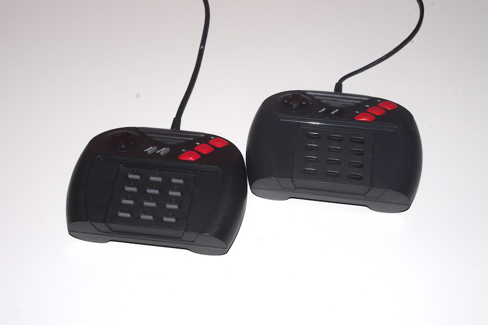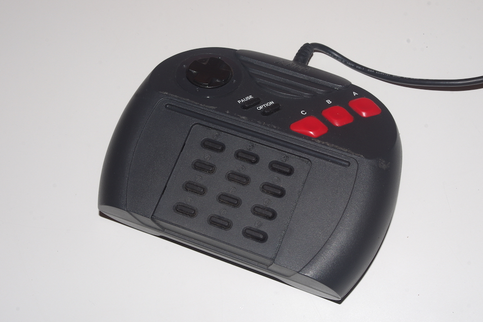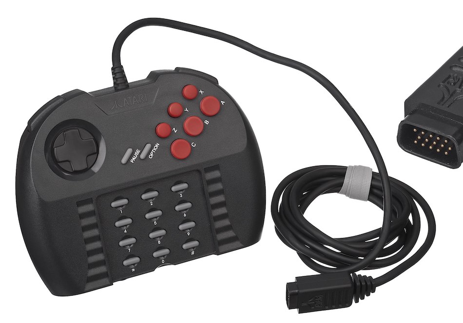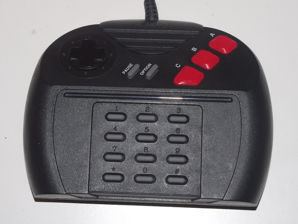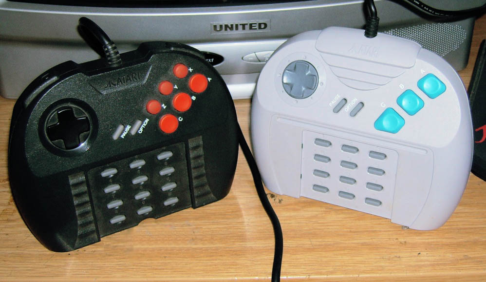 Der relativ komplizierte Spielcontroller – Steuerkreuz, drei Feuertasten, zwei Optionstasten und ein numerisches Tastenfeld – wurde 1:1 vom Atari Panther übernommen, selbst das Design wurde beibehalten. Über das Tastenfeld kann ein Overlay gelegt werden, welches links und rechts mit je zwei Laschen festgehalten wird, dieses liegt aber nicht allen Spielen bei. Angeschlossen wird der Controller an einer der beiden 15-poligen Schnittstellen an der Vorderseite der Konsole oder an einer der vier Schnittstellen des weiter unten erwähnten TeamTap. Produziert wurde der Controller von Casio Kofu (Seriennummer beginnend mit G1…) und Sinoca Taiwan (Seriennummer beginnend mit  B4…), rein äußerlich lassen sich die beiden Versionen an den unterschiedlichen Farben der Options- und Ziffernblocktasten (Sinoca: schwarz, Casio: grau) und an der Kabeldicke unterscheiden. Der Controller ist kompatibel zur erweiterten Controllerschnittstelle der Computer 520STE, 1040STE und Falcon 030 und kam farblich passend zu diesen auch in hellgrau/hellblau auf den Markt.