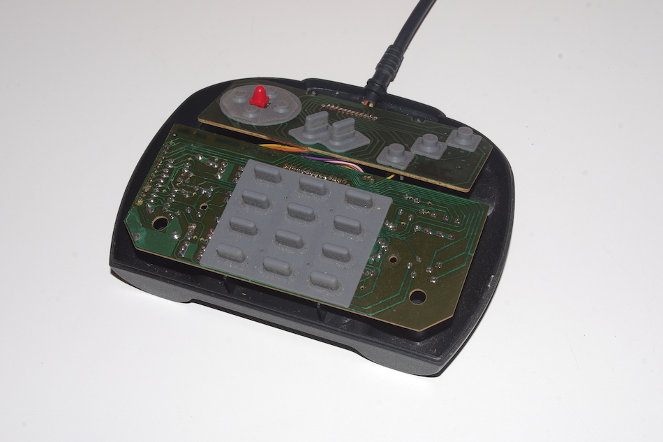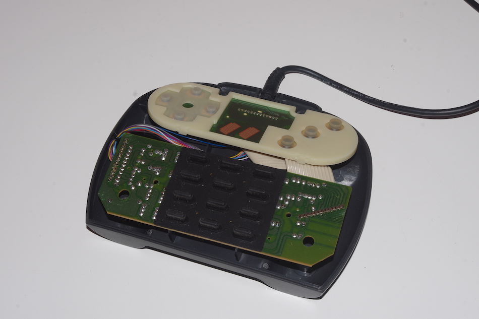 Im Inneren werkelt ein 74HC154N Multiplexer/Demultiplexer-Chip, der dafür sorgt, dass die Signale der verschiedenen Controller auseinandergehalten und richtig an die Konsole weitergegeben werden. Unterstützt wird er vom Buffer-Chip 74HC244P.