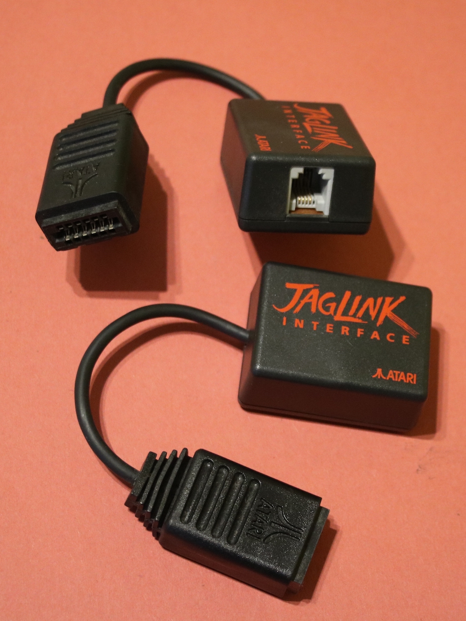 Netzwerk im Kleinformat: Mit dem Interface können zwei Jaguar-Konsolen direkt miteinander verbunden werden, eingesteckt werden die Adapter jeweils an der DSP-Schnittstelle der Konsole, verbunden werden sie dann mit einem Telefonkabel mit RJ11-Steckern. In jede Konsole muss dabei das gleiche Spiel eingesteckt und beide Konsolen müssen jeweils an ein eigenes Ausgabegerät gehängt werden. Spiele mit JagLink-Unterstützung sind Doom, Air Cars und BattleSphere.