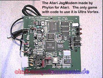 Das Modem wurde von Atari und Phylon Communications zusammen entwickelt und 1994 auf der Summer CES angekündigt, jedoch wurde die Veröffentlichung immer weiter verschoben und das Gerät wurde dann doch nicht auf den Markt gebracht. Über das Modem hätten mehrere Jaguar-Konsolen ortsunabhängig über das Internet miteinander vernetzt werden können. Das einzige Spiel mit Modemunterstützung ist Ultra Vortek, bei dem man im Titelbildschirm 911 eingeben muss, um das Modem zu initialisieren. Allerdings war ursprünglich auch angedacht, auch die Spiele Doom, Club Drive und Iron Soldier mit Modemunterstützung auszustatten. Das Modem arbeitet mit 19,9 kbit/s und kann bis zu 18 Telefonnummern speichern. Spieler müssen sich gegenseitig direkt anwählen, um spielen zu können. Es sollen etwa 100 Exemplare existieren.