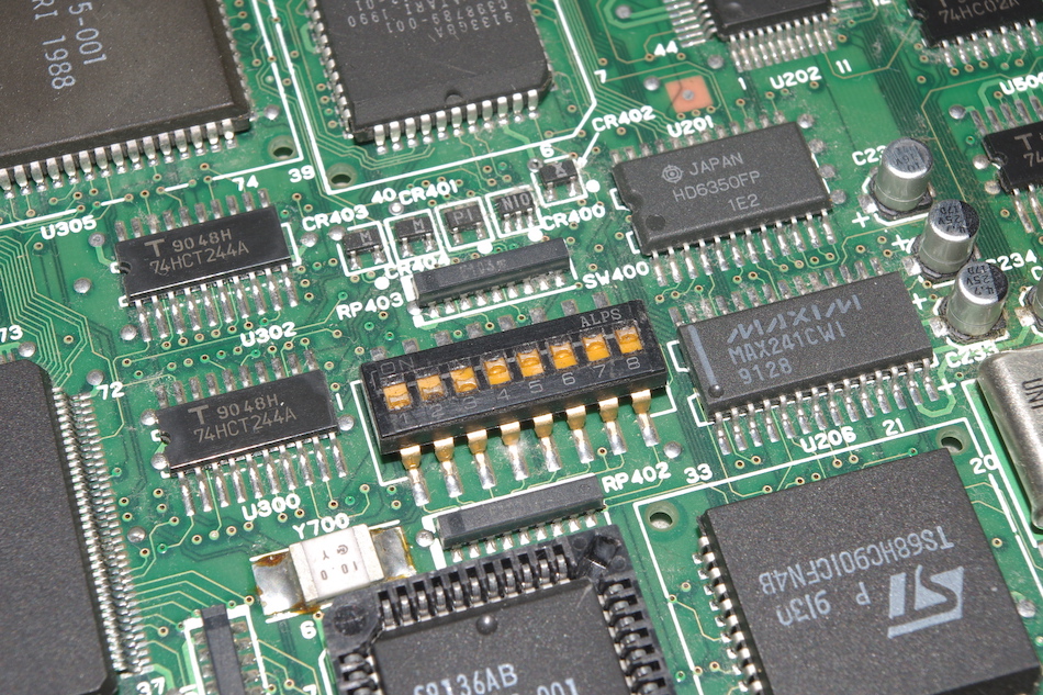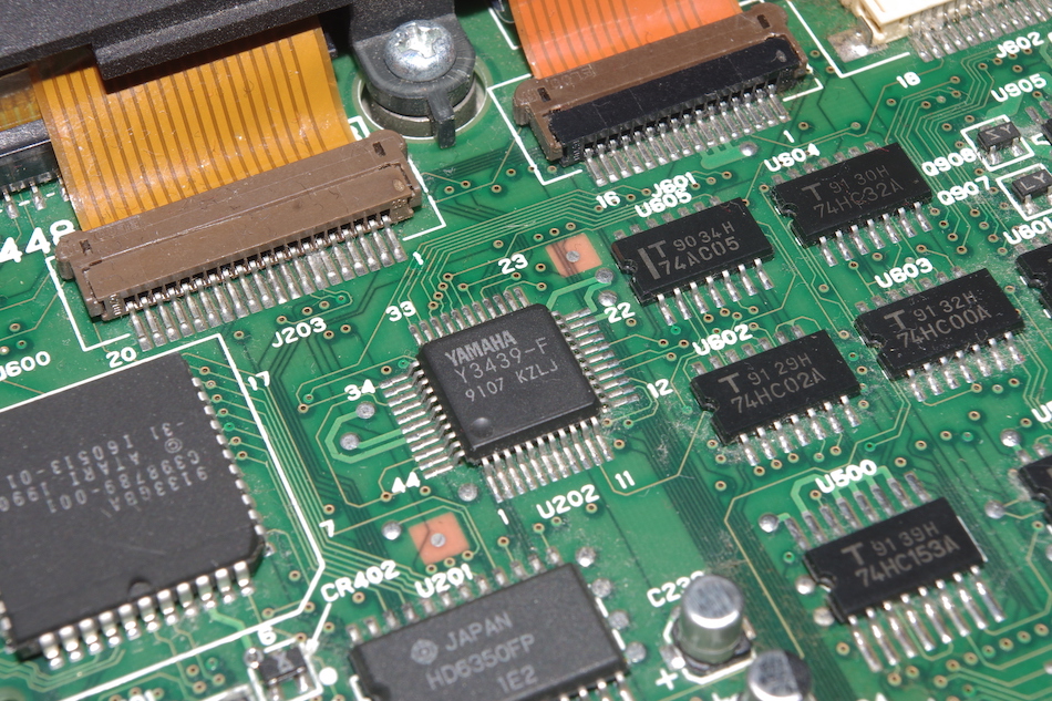 Ein Teil dieses Chips regelt die Datenübertragung der MIDI-Schnittstellen und arbeitet mit einer Übertragungsrate von 31,25 kilobaud. Der zweite Teil ist für die Übertragung von und zur Tastatur zuständig und arbeitet mit 7812 Bit/Sekunde.