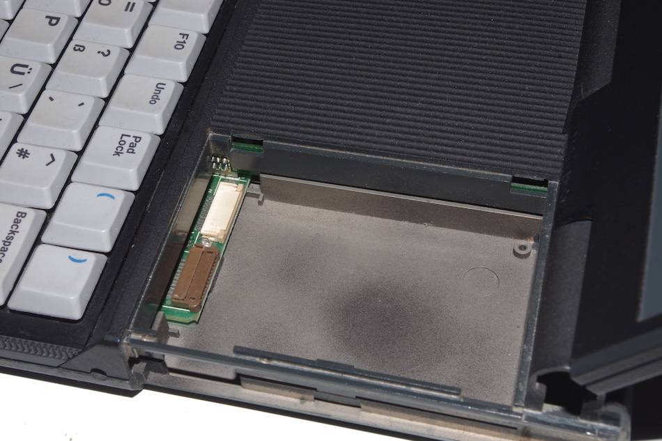 P:) zur Verfügung. Extern sollten über die Kombischnittstelle ACSI/FDD Geräte wie ein CD-ROM-Laufwerk oder ein Diskettenlaufwerk angeschlossen werden können, zumindest letzteres befand sich bereits im Entwicklungsstadium, bevor das Notebook wieder eingestellt wurde.