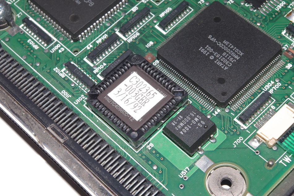 Der WD1772 sollte hier zum Einsatz kommen, er wandelt die 8 Bit breiten Daten des ST Book in serielle Daten für Diskettenlaufwerke um und vice versa. Zudem liefert er alle Steuersignale für die Diskettenlaufwerke. Jedoch befindet sich der Chip hier nicht auf der Hauptplatine, sondern sollte auf der Adapterplatine des nicht mehr entwickelten externen Diskettenlaufwerks zu finden sein.