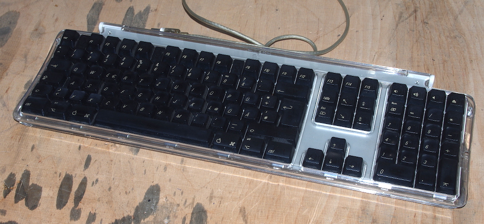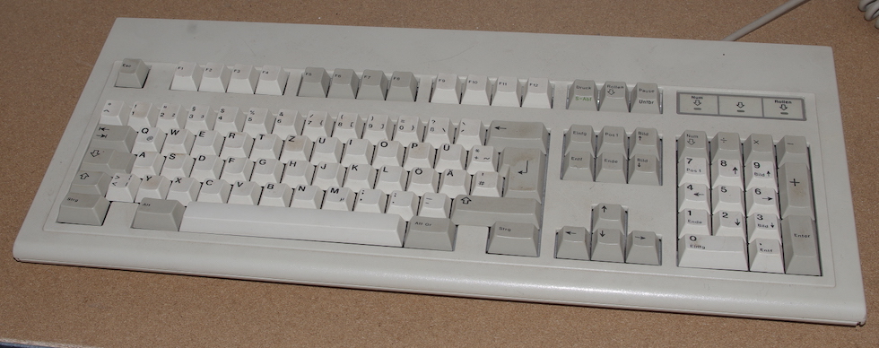 Sehr stark vergilbt, Oberfläche und Gleiter abgenutzt |