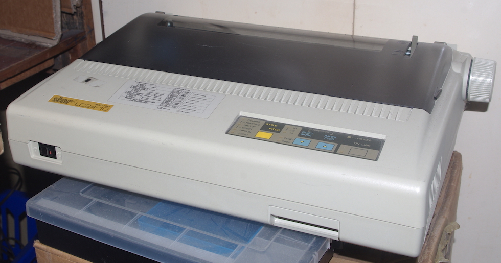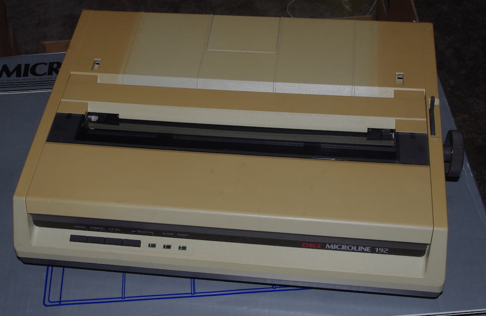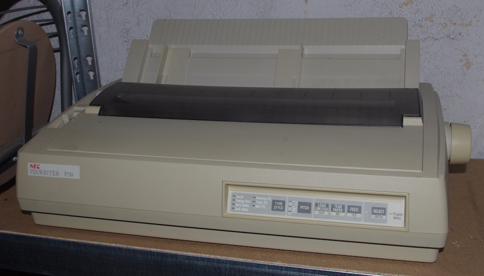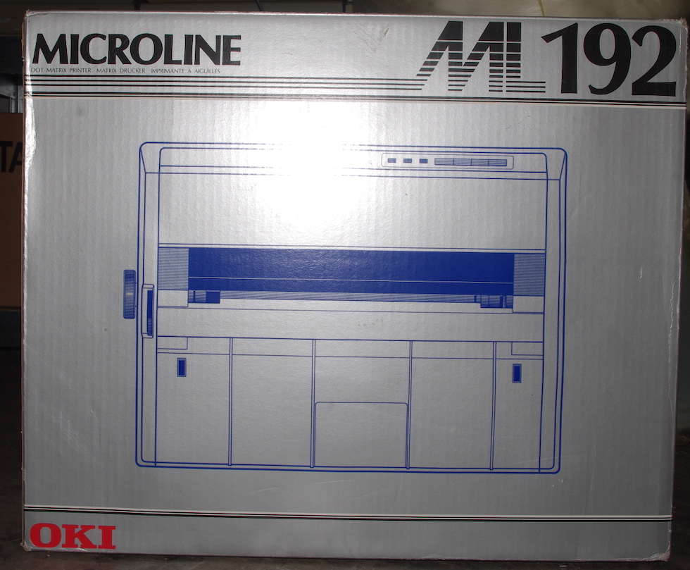 In Originalverpackung. Starke Vergilbungen, inkl. 2 Ersatzfarbbänder. |