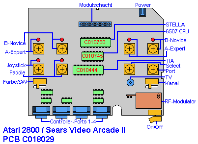 Hier kommt der Input-/Output-Timer 6532 aus dem Hause MOS Technology zum Einsatz. Er enthält auch die 128 Byte Arbeitsspeicher der Spielkonsole, zwei bidirektionale digitale 8-Bit-Ein- und Ausgänge sowie einen programmierbaren Intervalltimer. Er ersetzt somit mehrere integrierte Schaltkreise.