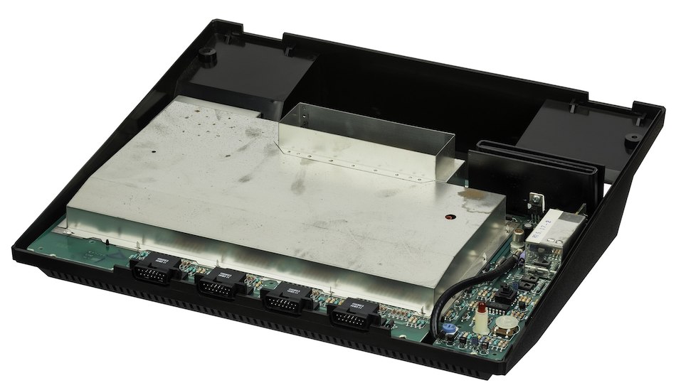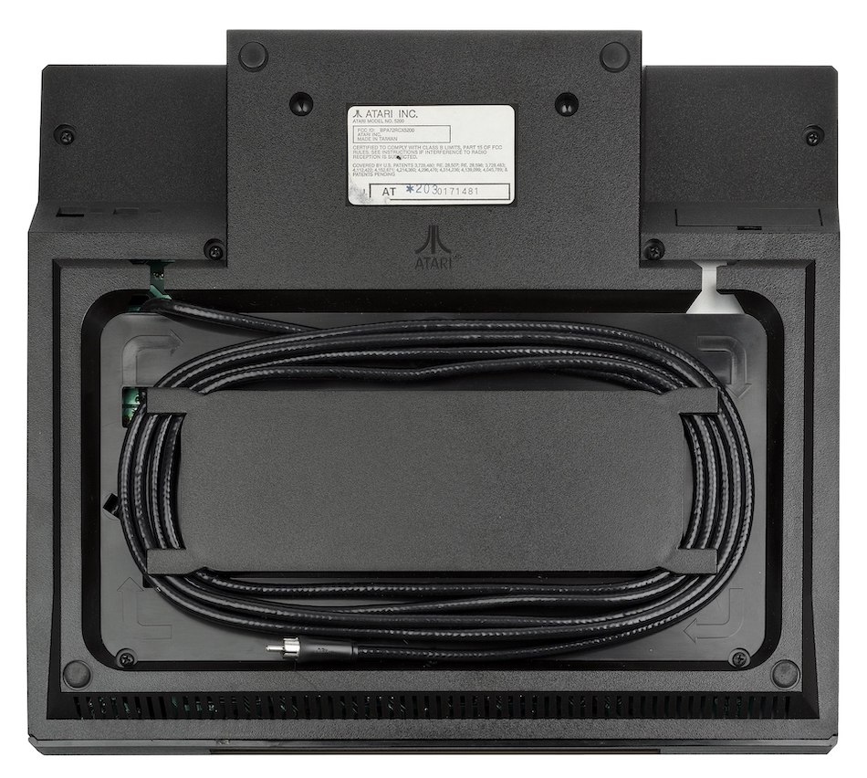 2700. Das Gehäuse ist vergleichsweise riesig, etwa vergleichbar mit der 2001 erschienenen Microsoft Xbox und damit doppelt so groß wie das des VCS. Es beinhaltet neben der Elektronik auch noch einen Stauraum für maximal zwei Joysticks vom Typ CX52, der mit einer semitransparenten Klappe versehen ist, sowie eine Aufwickelmöglichkeit für Kabel an der Unterseite des Gerätes. Links hinten sitzt zudem der Zugang zum Erweiterungsanschluss der Konsole.