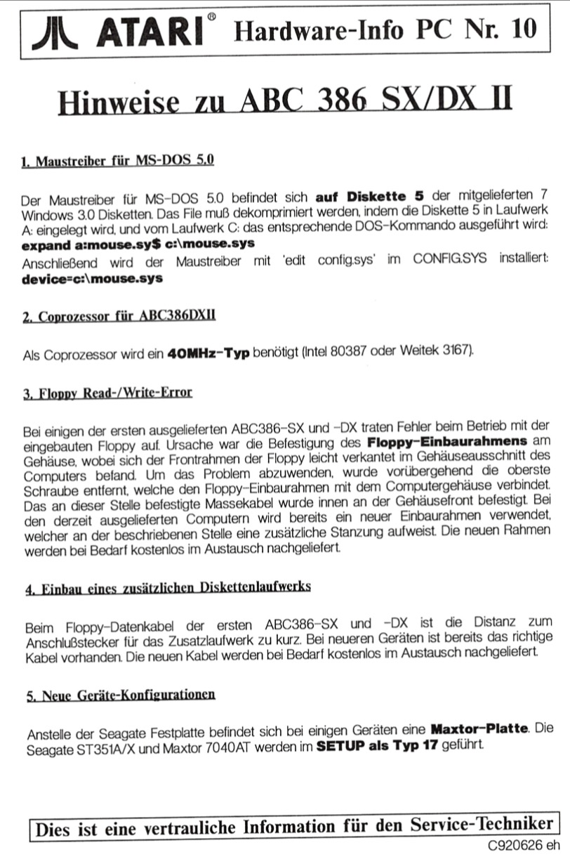 Atari PC 5 Atari HD-Kit Einbauanleitung Atari Hardware Info No. 37 Atari Hardware Info No. 38
