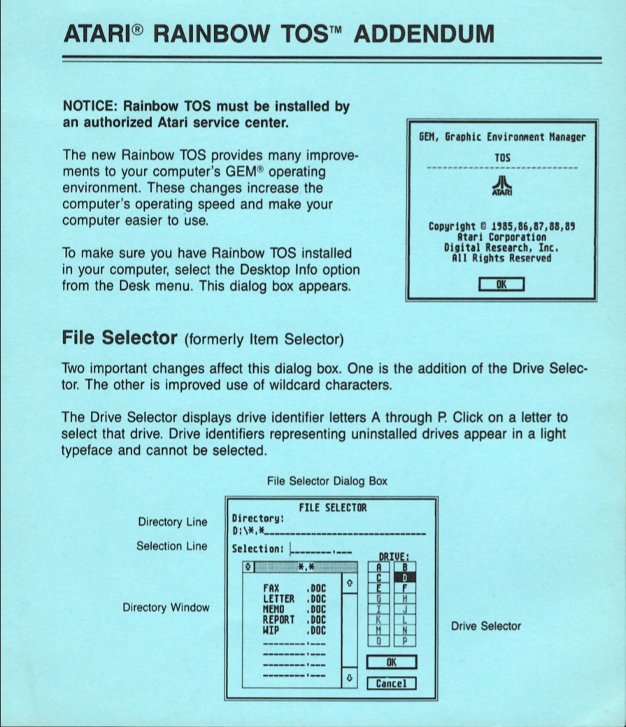 Atari Megafile Atari Rainbow TOS Addendum Atari Lynx Atari MultiTOS
