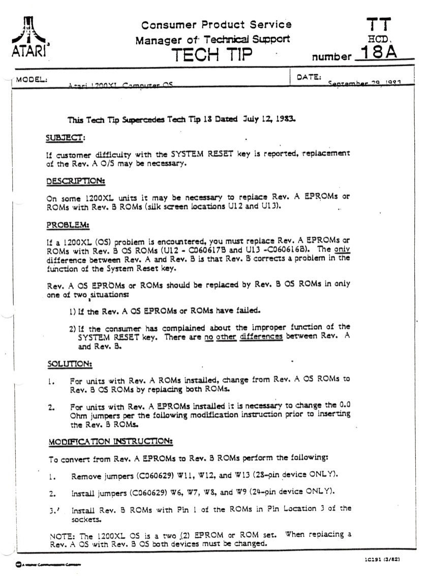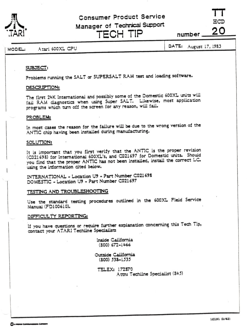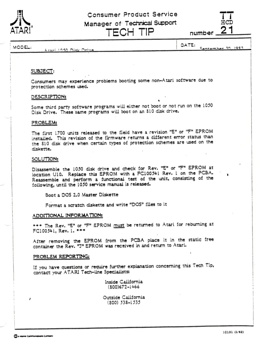 Atari Tech Tip 19 Atari Tech Tip 20 Atari Tech Tip 21 Atari Upgrade Bulletin 1