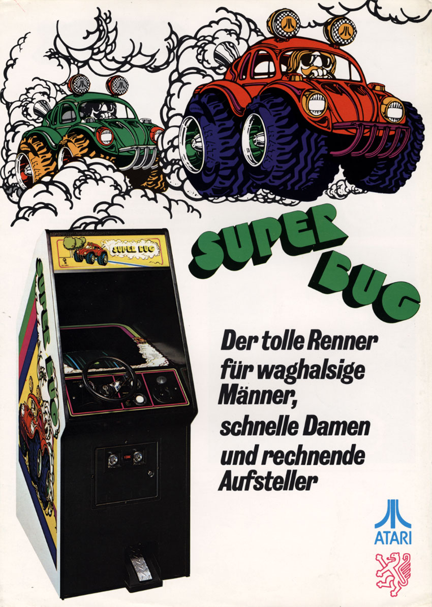 SUPER BUG – das Super-Ding mit tollen Kurven und vielen Raffinessen. Der Buggy wird realistisch gefahren auf kurvenreichen Strecken und schnellen Geraden. Der Spieler ist ständig in Aktion; er muß Ölflecken umfahren oder den schleudernden Wagen wieder unter Kontrolle bringen, muß am Straßenrand geparkten Autos ausweichen oder bei Straßengabelungen die mit einem Pfeil markierte richtige Spur erwischen, wenn er nicht in einer Sackgasse landen will.