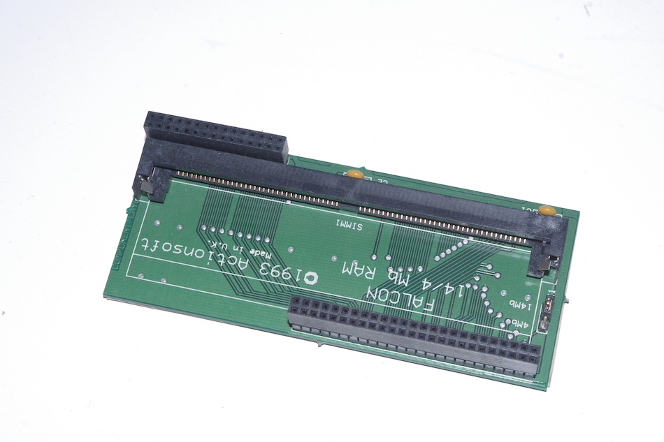 Leider erweist sich hier der extern auf 16-Bit verschmälerte Datenbus des 68030 als Flaschenhals – denn es sind nur maximal 14 MB Arbeitsspeicher ansprechbar. Von Atari gab es Steckkarten in den Größen 1, 4 und 14 , die auf zwei Pfostenleisten im Falcon aufgesetzt wird. Drittanbieter haben auch Karten auf den Markt gebracht, die man mit einem einfachen PS/2-SIMM bestücken kann.