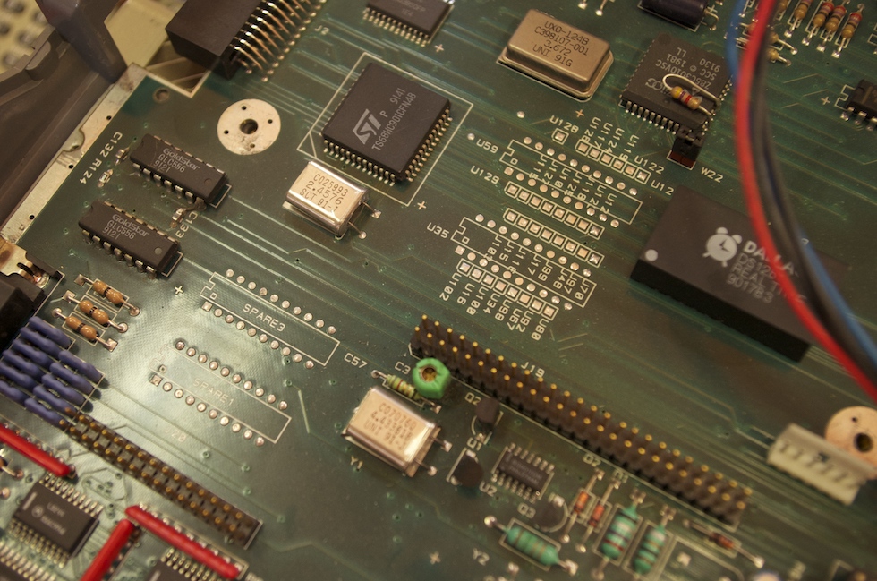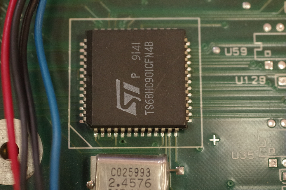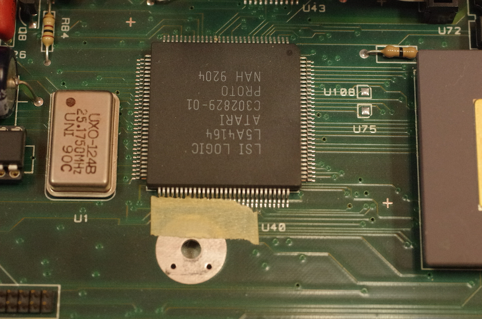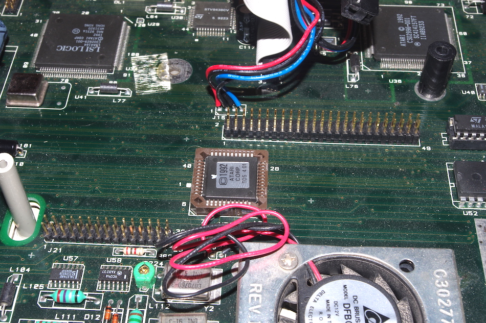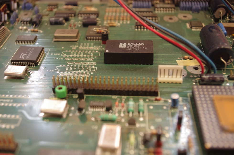 Dieser Chip dient dazu, vorgenommene Systemeinstellungen und -parameter sowie Datum und Uhrzeit auf dem Laufenden zu halten. Zu diesem Zweck hat er eine kleine Knopfzelle im Inneren verbaut, die so gut wie jedem Falcon-Besitzer in den letzten Jahren Ärger gemacht haben dürfte – denn sie ist nach über 20 Jahren im Einsatz verständlicherweise leer. Leider ist die Batterie nicht einfach auswechselbar (bei Atari dachte man wohl nicht daran, dass es Dekaden später immer noch aktive Falcon-Besitzer geben würde), der Chip muss dazu aufgesägt, die Batterie entfernt und ein Batteriehalter angelötet werden – oder alternativ der gesamte Chip ausgetauscht weren.