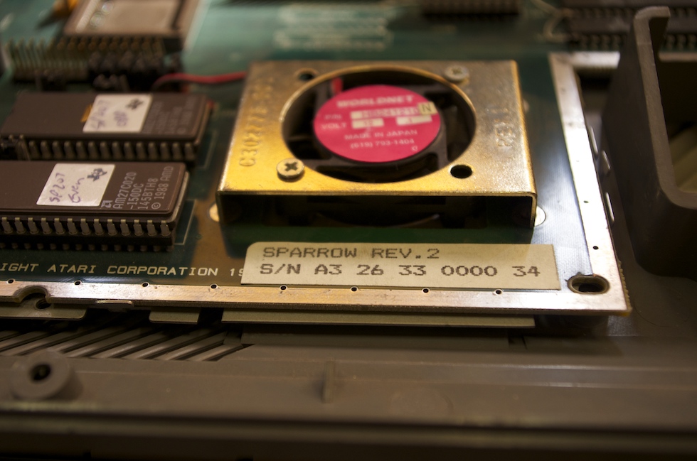 | Auf der Classic Computing 2014 in Schönau im Taunus hatte ich die Gelegenheit, den Sparrow- bzw. FX-1 Prototyp mit der Seriennummer 34 genauer zu betrachten, an dem in Sunnyvale von den Hardwareentwicklern John Townsend und Ken Badertscher gearbeitet wurde. Gefertigt wurde das Prototypen-Mainboard vom Subunternehmer EFA Corporation in Taiwan im Juni 1992. Dieser Prototyp ist dem Falcon 030 schon sehr nahe. |