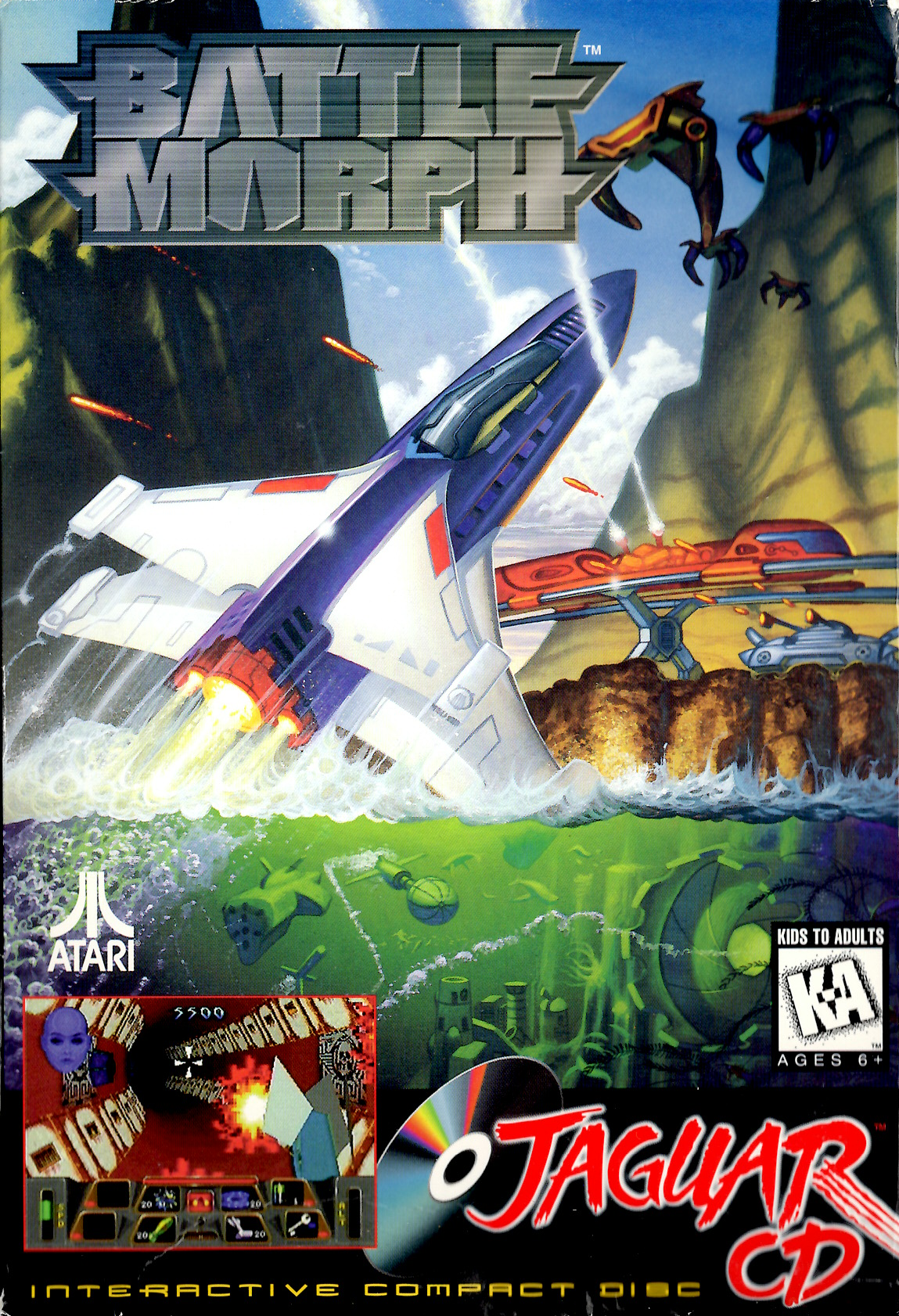 Du dachtest, Cybermorph war eine Herausforderung? Dann konfrontiere dich mit den neuen Feunden, Welten und Puzzles in Battlemorph. Nur auf Jaguar CD erhältlich! Das Pernitianische Imperium wurde aus unserer Welt vertrieben, aber nun sind sie zurück, um sich zu rächen! Whre den Angriff mit dem morphenden War Griffon ab, der seine Form der Umgebung anpasst. Fliege im Hoch- oder Tiefflug, rückwärts, unter Wasser und sogar unterirdisch, um die Schwachpunkte deiner Feinde zu finden. Entdecke neue Waffen und Fähigkeiten in fremden, nie zuvor gesehenen Welten!