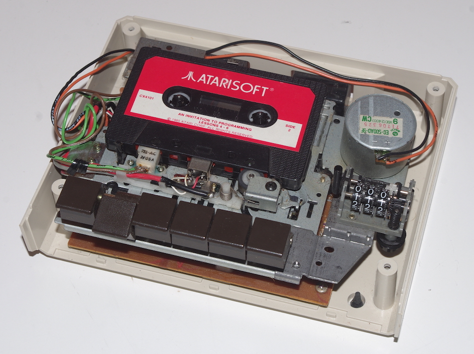 XC12 auch – eine Datenübertragungsrate von 600 Symbolen pro Sekunde (600 baud), auf eine 60-Minuten-Kassette (Standard-Bandlänge 171 Meter) passen bis zu 100 kB an Daten, auf eine 90-Minuten-Kassette (Bandlänge 256,5 Meter) etwa 150 kB – das entspricht knapp 6 kB Daten pro Meter Bandlänge. Das Laufwerk besteht aus einem Standard-Kassettendeck (mittels Motor über einen Riemen angetriebene Mechanik mit Magnettonkopf und sechs Tasten), einem riemengetriebenen Zählwerk mit Rücksteller und einer Steuerungsplatine mit den SIO-Schnittstellen zur Verbindung mit dem Computer und weiterer Peripherie. Die Stromversorgung erfolgt über ein externes 9V-Steckernetzteil mit Hohlstecker. Die Atari-Kassettenlaufwerke haben eine kleine Besonderheit: Sie verfügen über einen Stereo-Tonkopf, wodurch während des Ladevorgangs beispielsweise Musik oder Anweisungen abgespielt werden können, die Ausgabe erfolgt dabei mangels eingebautem Lautsprecher mittels SIO und POKEY über den Bildschirm.
